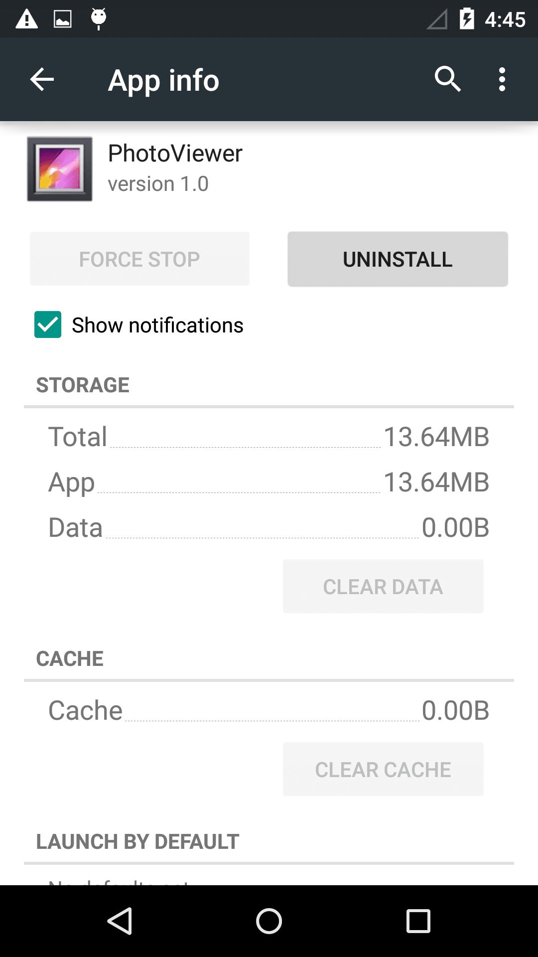 - Remove the ‘PhotoViewer’ app using standard Android app uninstallation tool