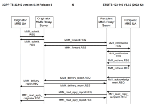 2. This then is forwarded by the sender’s MMSC to the recipient’s MMSC over the MM4 interface, using a MM4_forward.REQ. As a side note, this is different from how SMS works where the Sender’s SMSC is responsible for both submission and delivery, so straight away things are more complex