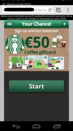 The second way of monetisation is when Selfmite.b uses the trojanised Google Plus app. First, when the user clicks on this app it tries to point to a certain app in Google Play (depends on a current configuration file). Second, when the user exits Google Play an unsolicited subscription website opens in a browser on the phone. In both cases the malware author(s) use advertising and referral networks to monetise this behaviour.